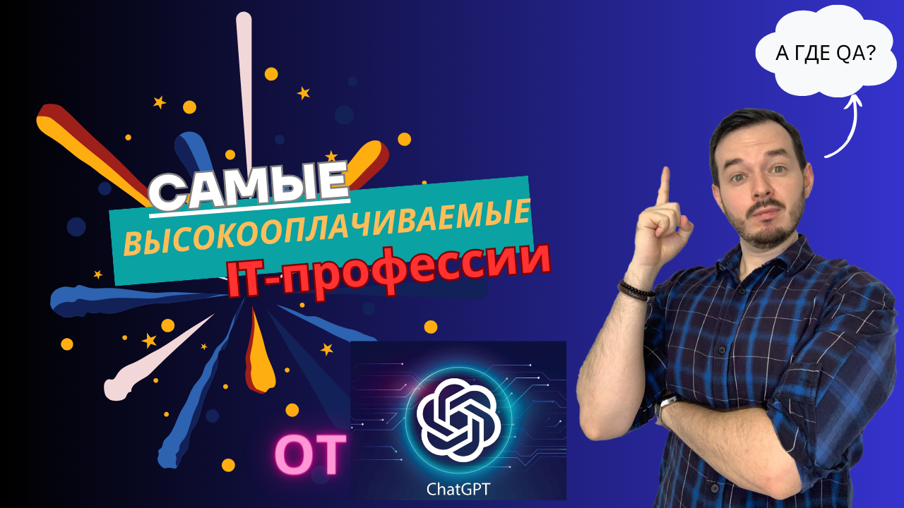 Совместно с ChatGPT составили рейтинг самых высокооплачиваемых IT-профессий в 2024 году! QA в нем не было ( Смотрим! Делимся мнением! Таймкоды: 00:00 - Вступление 00:26 - Список профессий 10:10 - Итоги 10:22 - Бонусная Профессия 12:00 - Заключение 12:32 - Неудавшиеся дубли