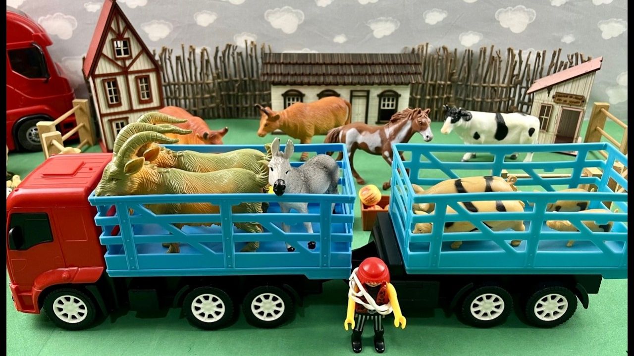 Разгрузка телеги с животными. 🐷🐮🐴
