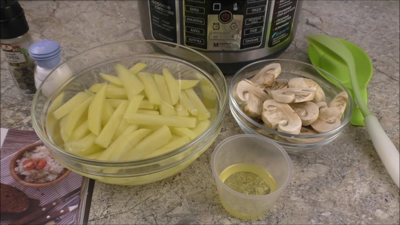 Готовлю картофель жаренный с грибами в мультиварке. Мой ужин.