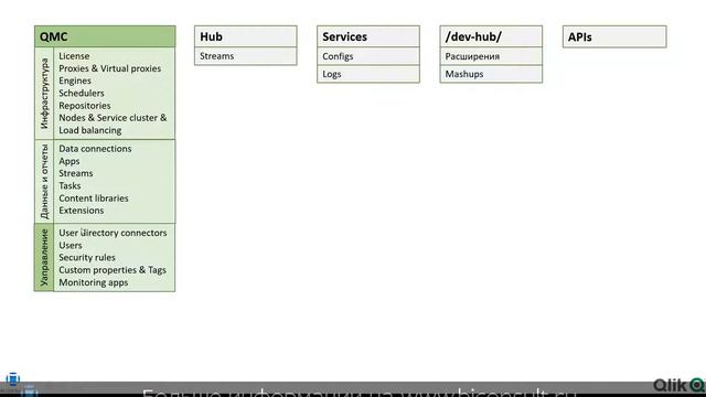 Из чего состоит Qlik Sense Enterprise Server (сервер)? Логи Qlik Sense, журналы, метаданные, директории и многое другое. Любые настройки Qlik Sense и консультации на https://biconsult.ru/ Учебники и книги по теме https://biconsult.ru/downloads Курс по администрированию Qlik Sense https://education.biconsult.ru/course... Рассматриваем: - QMC Hub services - предоставляет вам набор очень мощных инструментов для создания различных шаблонов доступа для разных администраторов QMC и для разных групп пользователей, которые обращаются к концентратору. - Dev Hub - API - Repository Database репозиторий Qlik Sense - Repository Service - Proxy Service прокси - Engine Service - Dispatcher Service - Scheduler Service - Logging Service - License Service