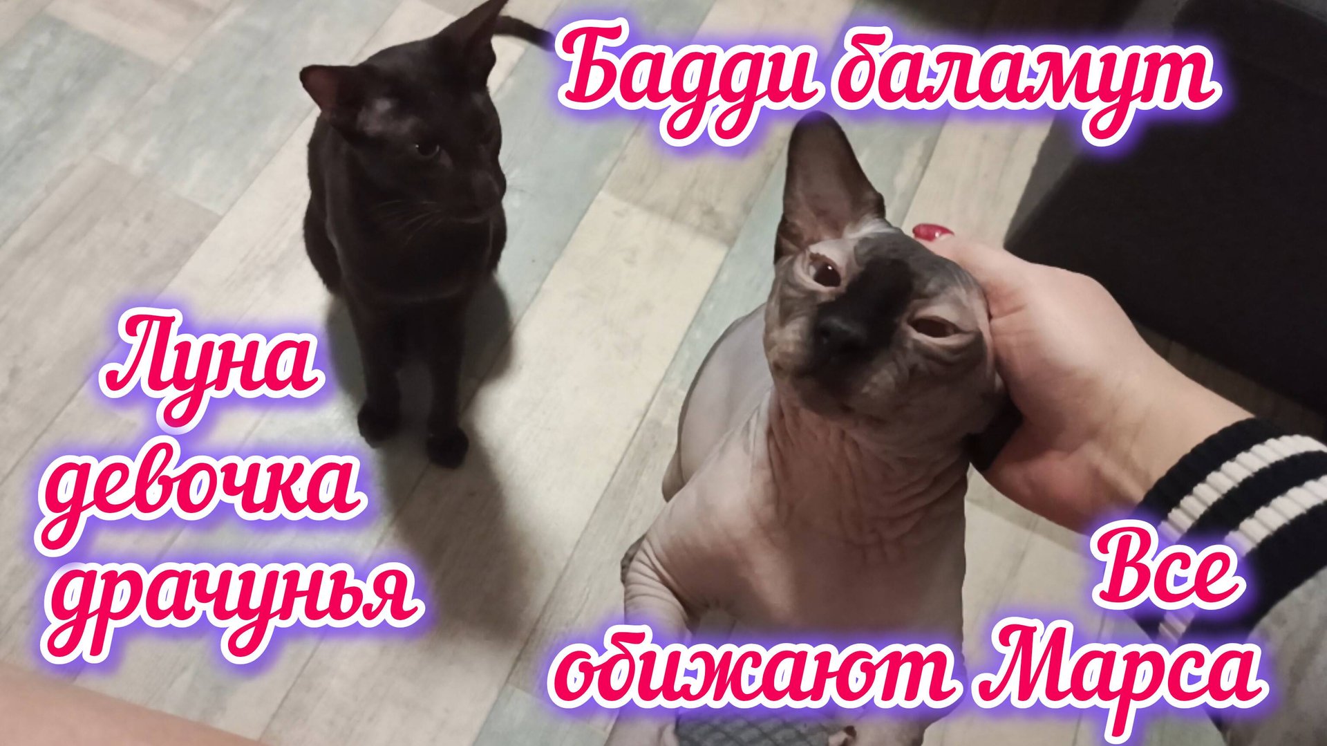 Всем привет,давайте знакомится с нашими котятками. Канадские Сфинксы Луна и Марс, ориентальный кот Бадди. У них есть своя комната в доме,там стоят домики,туалет очень большой,миски для корма. висит гамак. Муж сам соорудил ступеньки на стенке .Много игрушек. Они конечно же бегают по всему дому, но так как у нас есть маленькие дети, то мы в комнату поставили дополнительную минидверь с окошком,что бы наши хвостатые смогли сами выходить из комнаты и входить.Заходите на наш канал, смотрите с удовольствием видео с котятами,и конечно же подписывайтесь,оставляйте комментарии. В будущем мы надеемся на потомство от сфинксов.