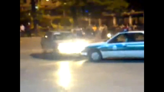 Чувак показывал мастерство дрифта и наткнулся на полицейскую машину. Да еще и смыться успел.