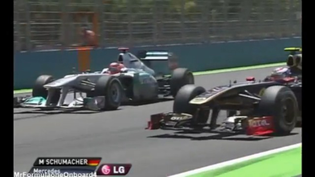 Видеозапись инцидента между Михаэлем Шумахером и Виталием Петровым на 15-м круге Гран При Европы.