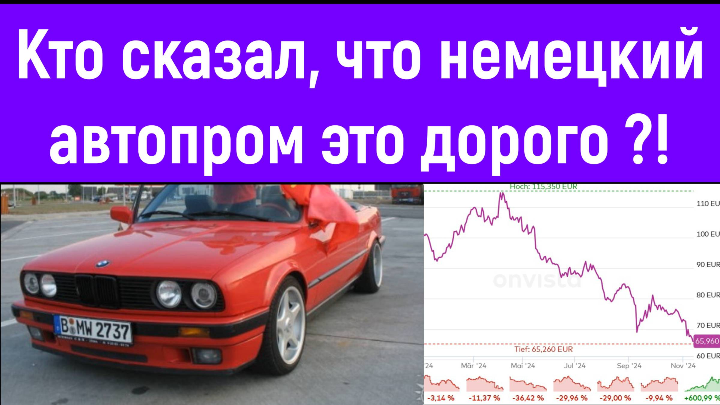 Разбираю технологические, экономические и геополитические причины кризиса немецких производителей (BMW, Mercedes, Volkswagen, Audi, Porsche) и обсуждаю возможные инвестиции на примере акции БМВ. (Не является индивидуальной инвестиционной рекомендацией. Ваши деньги - Ваше дело!) 01:14 — проспали технологический переход? финансовое бремя перехода 03:40 — американские акции, европейские акции и немецкий автопром, китайские акции 04:20 — зелёная повестка в ЕС 05:18 — пошлины Трампа 05:47 — геополитика, энергия, продажи на востоке 07:15 — коктейль из проблем 07:55 — формирование инвестиционного мнения 13:33 — фото своей студенческой машины и история про поездку из Берлнина в Голландию 14:22 — акция БМВ (BMW Aktie) 16:08 — очень важная мысль 18:14 — ещё одна хорошая мысль 🔹 Биография и услуги: https://ap-finance.ru 🔹 Telegram: https://t.me/investrocker_consulting 🔹 Вконтакте: https://vk.com/investrocker_consulting Использованные аудиотреки: https://music.yandex.ru/artist/19391278 https://vk.com/investrocker_music #акции #инвестиции #фондовыйрынок #валюта #новостиэкономики #счастьевжизни #инвестрокер #investrocker #александрпашенцев
