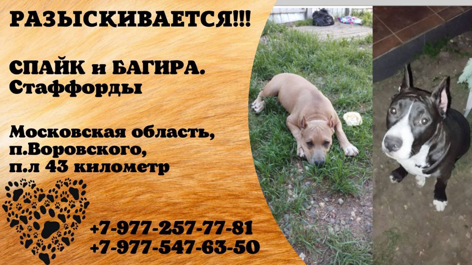 Пропали собаки! СПАЙК и БАГИРА. Стаффорды. Московская обл, п.Воровского