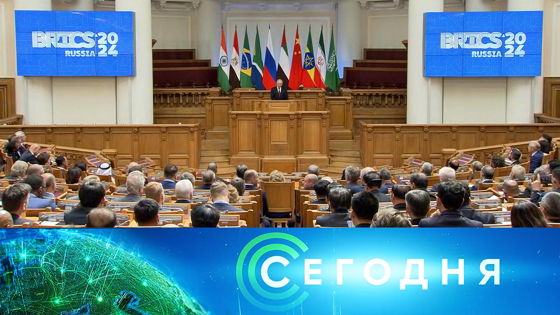 00:00 В этом выпуске 0:35 Владимир Путин принял участие в пленарном заседании X парламентского форума БРИКС, который проходит в Санкт-Петербурге. 02:46 Китай и Россия названы главными угрозами в итоговой декларации саммита НАТО, проходящего в Вашингтоне. О чем еще договорились участники встречи и что пообещали Украине в лице Зеленского? 09:50 Огневые налеты: мощные удары по позициям противника наносят танкисты Южной группировки войск в ДНР. 13:41 190 тыс. человек заключили контракты с Минобороны с начала этого года. Прошедшие отбор получают социальный пакет, который распространяется и на семью бойца. 15:23 Сотни тысяч гектаров в огне и в дыму: последняя сводка о ситуации с лесными пожарами в российских регионах. 16:12 Никакой анонимности: в Роскомнадзоре выдвинули инициативу о том, чтобы блогеры с аудиторией больше тысячи человек в день сообщали в ведомство сведения о себе. 20:37 Горные перевалы, бездорожье и пустыня: с какими сюрпризами столкнулись участники международного ралли «Шёлковый путь» на монгольском этапе. 23:30 Проект «Консервация»: как в России возрождают и спасают шедевры живописи из заброшенных памятников архитектуры. 29:36 В Старой Ладоге готовится к открытию уникальная фотовыставка: там будут представлены работы, сделанные необычным способом — соларографией. Больше новостей — в Telegram. Подписывайтесь: https://t.me/ntvnews Смотрите все выпуски «Сегодня» на RUTUBE: https://rutube.ru/plst/53542/