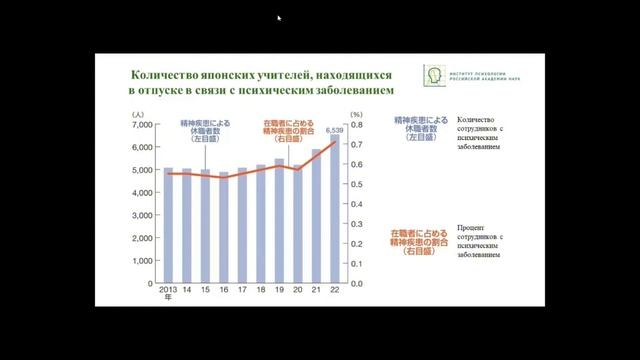20 декабря 2024 г. Центром японских исследований ИКСА РАН совместно с Ассоциацией японоведов РФ в ИКСА РАН была проведена XVII ежегодная конференция Ассоциации японоведов. В рамках конференции проведены пленарное заседание и организованы секции: • Внешняя и внутренняя политика современной Японии • Экономика и общество современной Японии • Истории Японии • Культура Японии Секция «Экономика и общество современной Японии» Модератор – Тимонина И. Л., д.и.н., профессор ИСАА МГУ, РАНХиГС 00:07 Ребрей Софья Михайловна – к.э.н., доцент кафедры мировой экономики МГИМО, Балашова Наталья Евгеньевна – соискатель МГИМО, вед. спец. Института экономики, математики и информационных технологий при РАНХИГС. Роль женщин в японской науке 33:41 Скрыльникова Наталья Ивановна – психоаналитик Центра психологии и психоанализа «Selfhood». Психологические последствия ядерных катастроф: стигматизация выживших в Хиросиме, Нагасаки, Фукусиме 14:07 Федотова Мария Викторовна, аспирантка ФГБУН Институт психологии РАН. Психологическое благополучие учителей общеобразовательных и коррекционных школ в Японии 22:32 Сукиасянц Николь Николаевна – аналитик Центра «Государство и Религия в Азии» ИКСА РАН, аспирант ИСАА МГУ. Сотрудничество миссии тюремного служения с уголовно-исполнительной системой Японии в исправлении осужденных