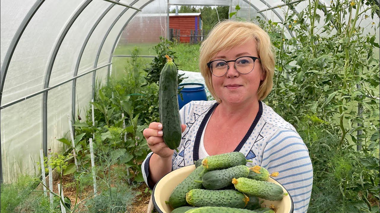 Как правильно собирать огурцы в теплице при формировании в один стебель. Обзор огорода и цветов после недели вольного роста) Приезжаем в деревню 1 раз в неделю на один полный день! Как все успеть?