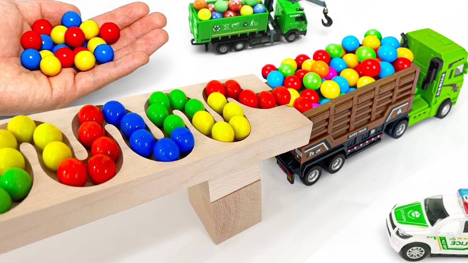 Гонка шариков волновой склон. Машинки для детей Мусоровоз Самосвал Скорая помощь Экскаватор Трактор