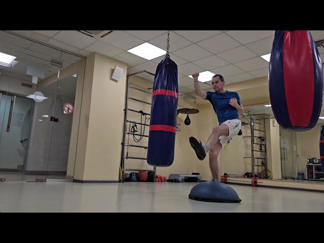 Удары ногами и руками на мягкой полусфере "босу"