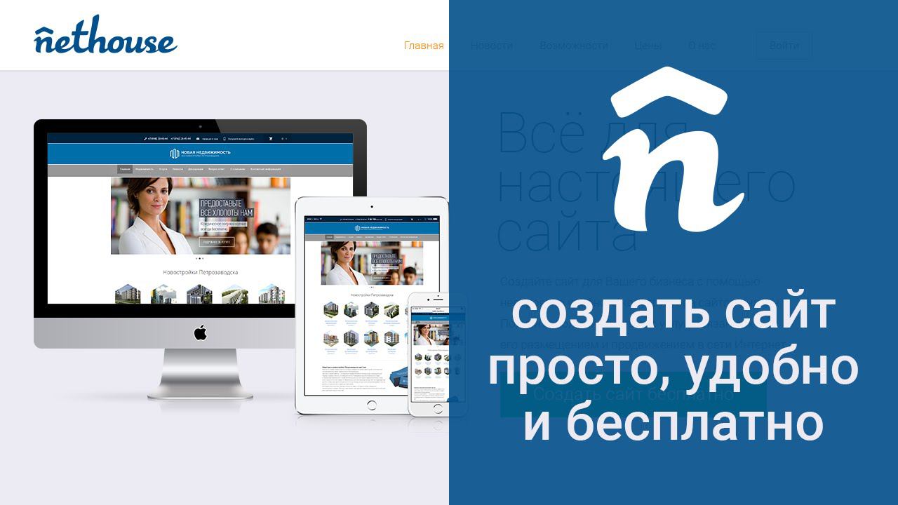 Сайт для бизнеса просто, удобно и бесплатно. Создайте его сами на платформе Nethouse и получите полный комплекс услуг сразу и в одном месте. Создание сайта в удобном конструкторе не сложнее заполнения странички в социальной сети. Множество великолепных шаблонов для интернет-магазина, лендинга, "визитки", сайта фирмы или специалиста. Регистрация домена более чем в 150 зонах от аккредитованного регистратора. Услуги продвижения сайтов в поисковых системах. Nethouse выбрали уже более 800 000 предпринимателей. Присоединяйтесь прямо сейчас! http://nethouse.ru