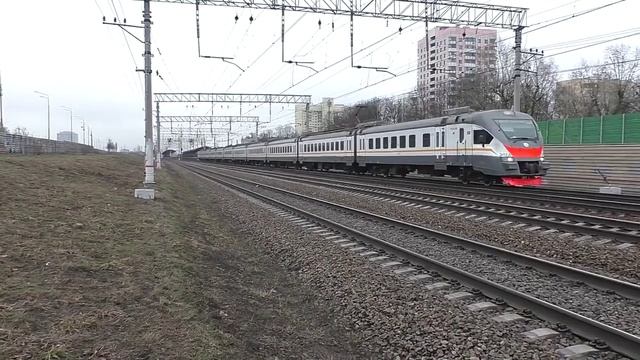 Видео снято 27.03.2023 г. в 11:39 видеокамерой Panasonic HC-V760 на перегоне ст. Люберцы-1 - ст. Перово-1, участок о.п. Выхино - о.п. Вешняки. Москва, Казанско-Рязанское направление Московской ж. д., 14 км до Казанского вокзала. Электропоезд ЭП2Д-0181 (приписан к ЦППК) пригородный поезд №6113 Голутвин - Москва (Казанский вокзал), следует по 2-му гл. пути. Электропоезд ЭД4М-0142 (приписан к депо ТЧ-7 Раменское) пригородный поезд №6544 Москва (Казанский вокзал) - Ипподром, следует по 1-му гл. пути. 1) ??? Электропоезд ЭП2Д-0181 - Электропоезд Пригородный, тип-2, Демиховский, 0181 - порядковый номер. Дорога приписки: Частные перевозчики Депо: АО "Центральная пригородная пассажирская компания" Серия: ЭП2Д (М) Завод-изготовитель: ОАО "Демиховский машиностроительный завод", Россия, Московская область, п. Демихово Заводской тип: 62-377 Построен: 2022 г Категория: Электропоезда Текущее состояние: Эксплуатируется Построен в 11-ти вагонной составности Эксплуатация: С завода поступил в собственность АО «Центральная ППК» 2) ??? Электропоезд ЭД4М-0142 - Электропоезд Демиховский, тип-4, Модернизированный, 0142 - порядковый номер. Дорога приписки: Московская железная дорога Депо: ТЧ-7 Раменское (МВПС) Серия: ЭД4 (М) Завод-изготовитель: ОАО "Демиховский машиностроительный завод", Россия, Московская область, п. Демихово Заводской тип: 62-301 Построен: 10.2005 г Категория: Электропоезда Текущее состояние: Эксплуатируется Секции: ЭД4М-3024 Примечание: 008704 Построен в 10-ти вагонной составности Эксплуатация: С завода поступил в депо ТЧ-7 Раменское Московской ж. д., был дополнен вагоном ЭД4М-3036 Вагоны и сетевые коды: 01 — 13008396 02 — 13008479 03 — 13008412 04 — 13008220 05 — 13008438 06 — 13008446 07 — 13008453 08 — 13008461 09 — 13008404 10 — 13008487 Ремонт: 01.2011 г. - КР-1 Московский ЛРЗ 11.2017 г. - ТР-3 депо Курган 08.2019 г. - КР-1 Московский ЛРЗ (составность: 01-02-03-04-05-06-08-3036-3031-10-09) 12.2021 г. - КР-2 Московский ЛРЗ (составность: 01-02-03-04-05-06-08-07-10-09) Происшествия: Предположительно ночью 30 июля 2022 года был поджог одного из головных вагонов на станции Люберцы-1. Одной из причин является поджог.