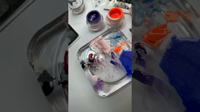 Дизайн ногтей новые Шармиконы с гелевыми красками Фиолетовые лучи и Электрический закат