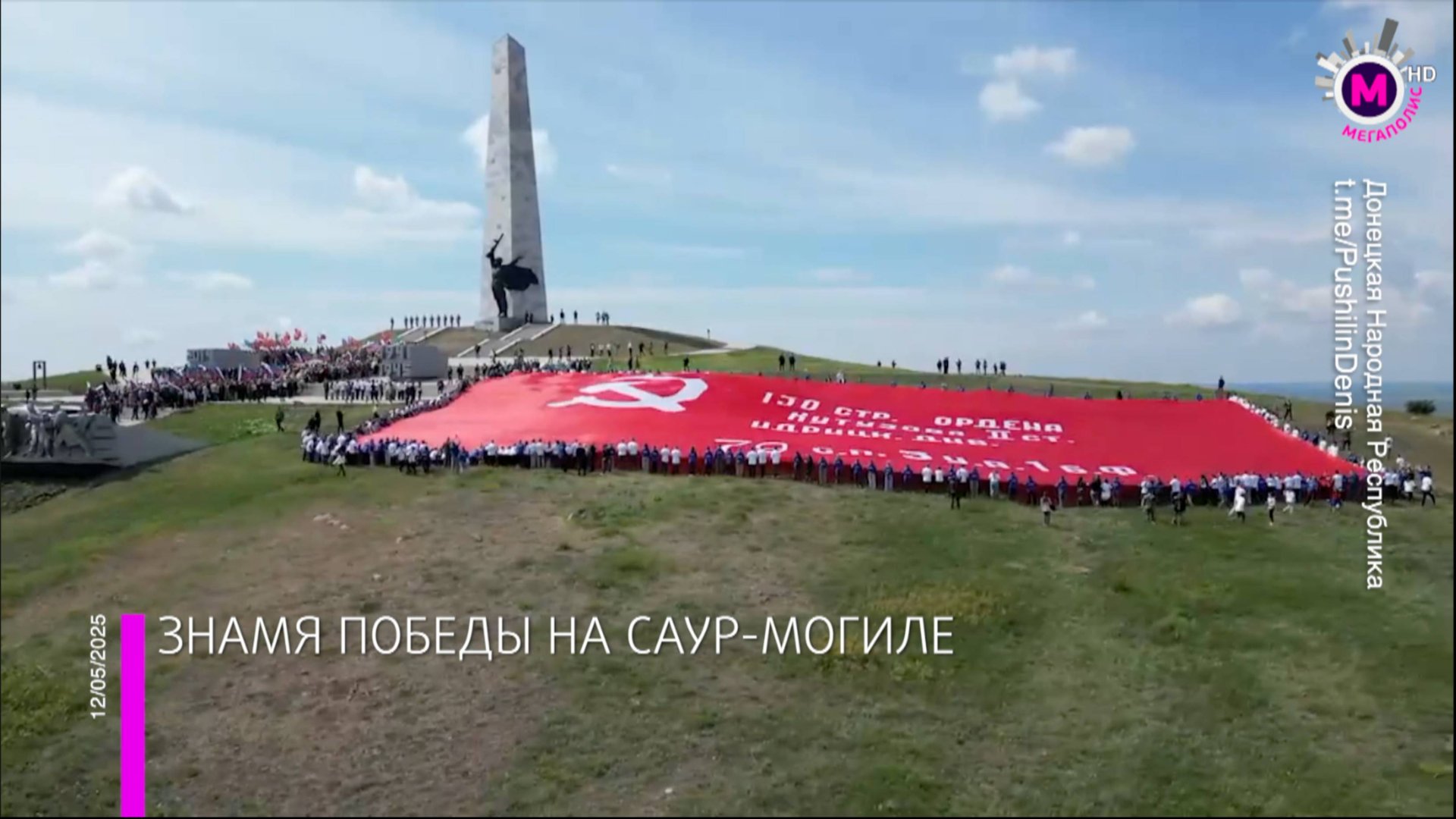 Возложение цветов, панихиды и самое большое знамя Победы в мире. В месте переплетения истории, на легендарной высоте Саур-Могила в ДНР прошли масштабные памятные мероприятия.