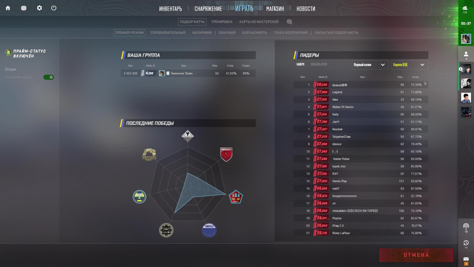 В топе