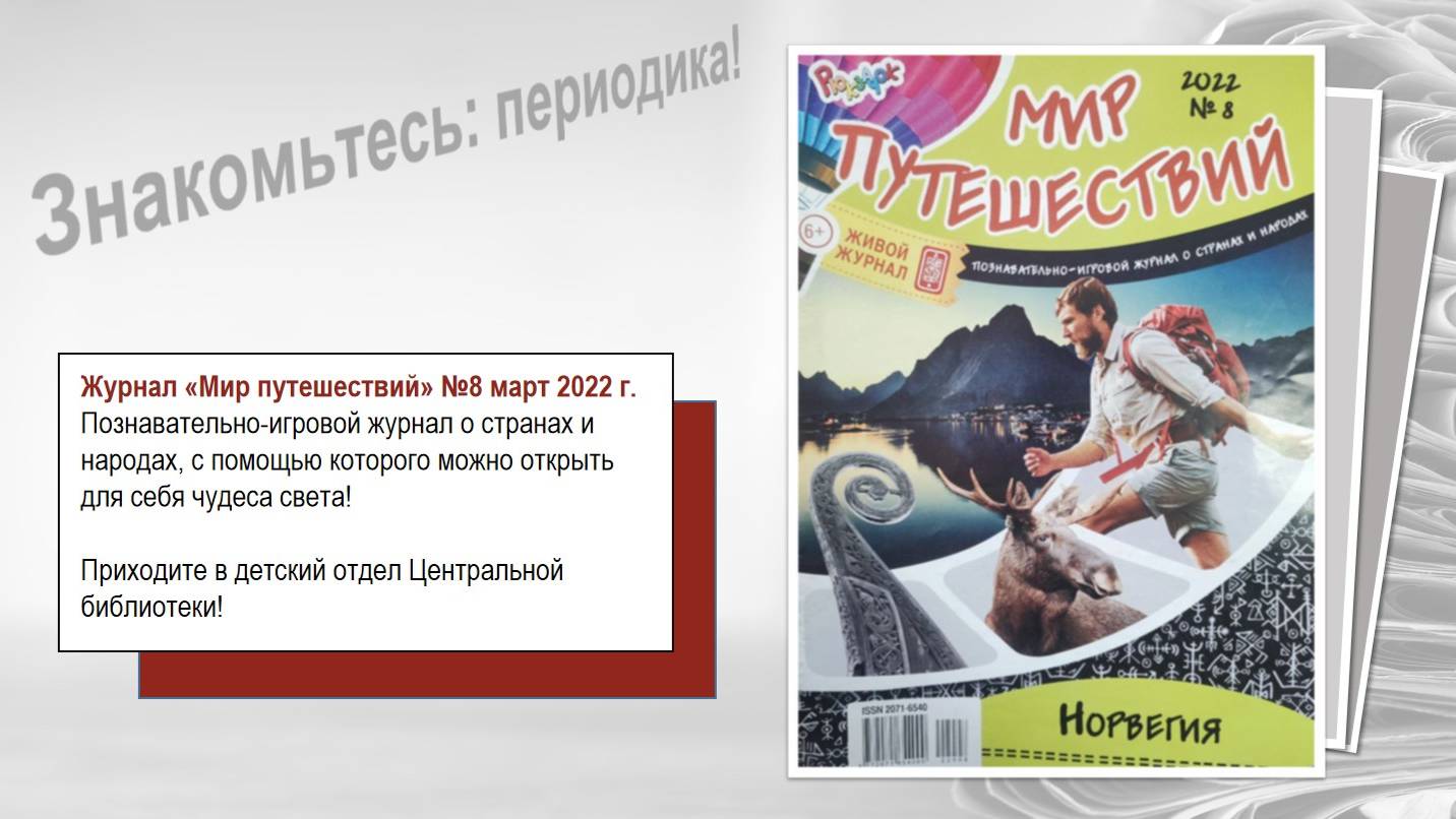 Предлагаем вашему вниманию обзор периодических изданий. Эти журналы ждут вас на полках детского отдела Центральной библиотеки.