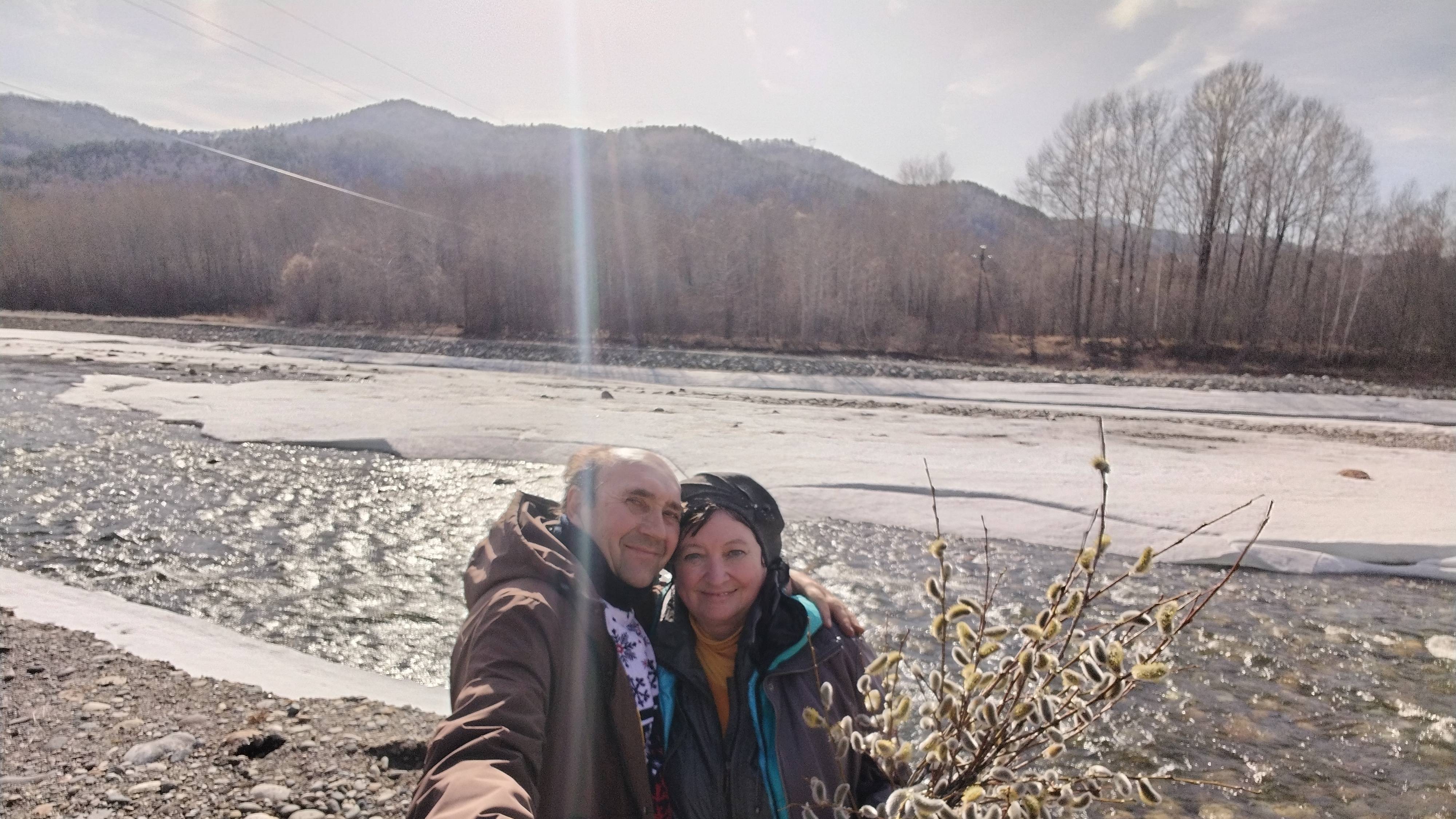 Отмечаем Вербное воскресенье. Нарвали вербу. На речке.