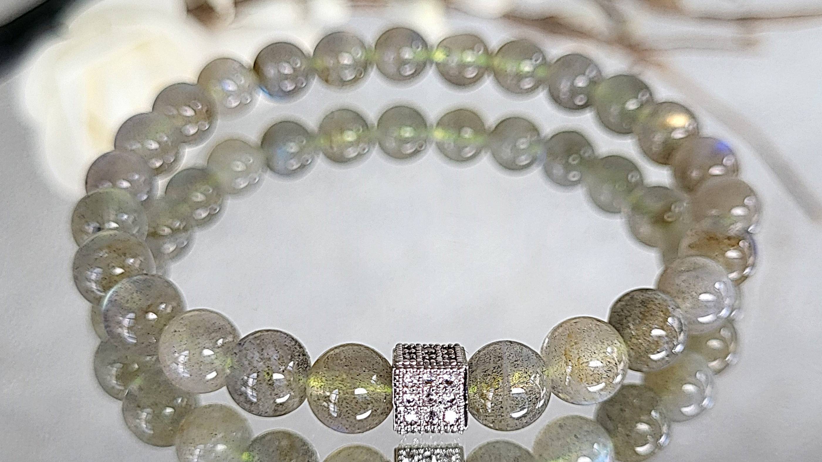 Браслет из лабрадора шарик 7 мм.