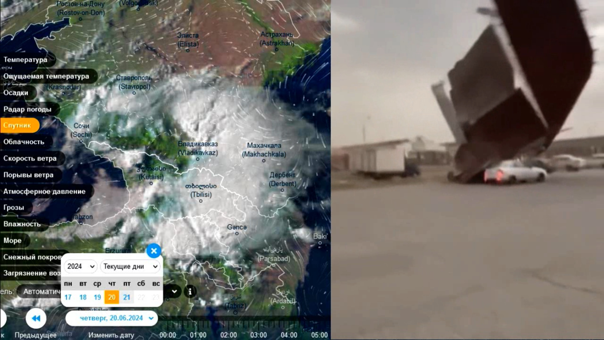 Конвективная стихия на Северном Кавказе. Вид со спутника 20.06.2024