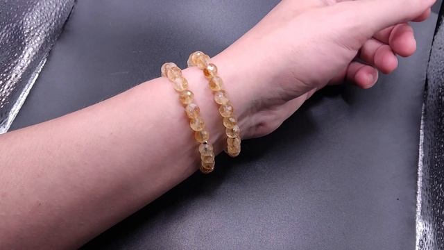 Браслет Цитрин. Гранёные бусины на резинке. Природный камень. Место добычи - Бразилия. Диаметр бусин: ~8.2 мм На обхват запястья: 1) - 17 см 2) - 17 см Б71