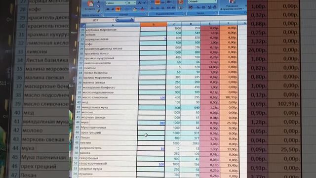 Таблица для расчета себестоимость торта
