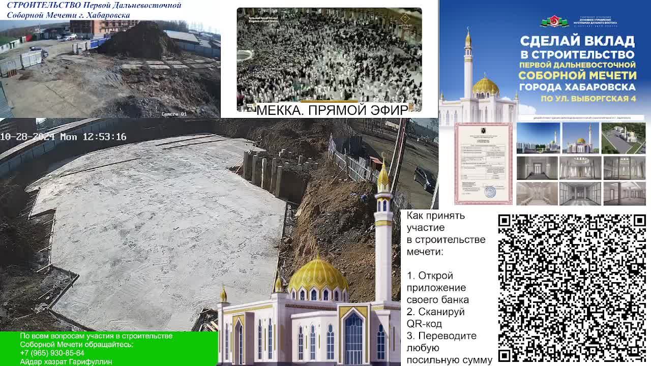Строительство Первой Дальневосточной Соборной Мечети. Адрес расположения: г. Хабаровск, ул. Выборгская 4 Застройщик: РО "Духовное управление мусульман Дальнего Востока в составе ЦДУМ России" Разрешение на строительство №27-23-90-2022 Срок действия разрешения: 19.10.2027 Телеграмм канал, посвященный строительству мечети: https://t.me/domvrayu_mechet Сайт строительства Первой Дальневосточной Соборной Мечети: https://domvrayu.ru/ По всем вопросам участия в строительстве: +7 965 930-85-64 Айдар хазрат Гарифуллин