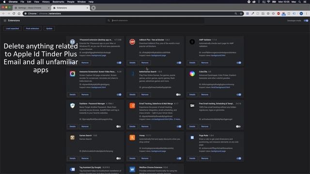 This video will show you how to remove the Apple Id Tinder Plus Scam from your Mac. If you still need help we have a detailed guide to help you with all the steps: https://howtoremove.guide/apple-tinder-plus-scam/