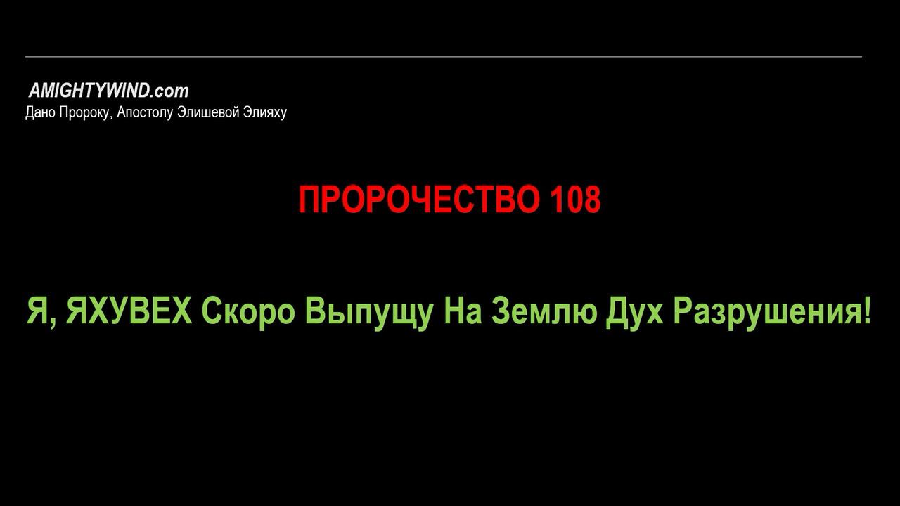 Пророчество 108. Я, ЯХУВЕХ Скоро Выпущу На Землю Дух Разрушения!