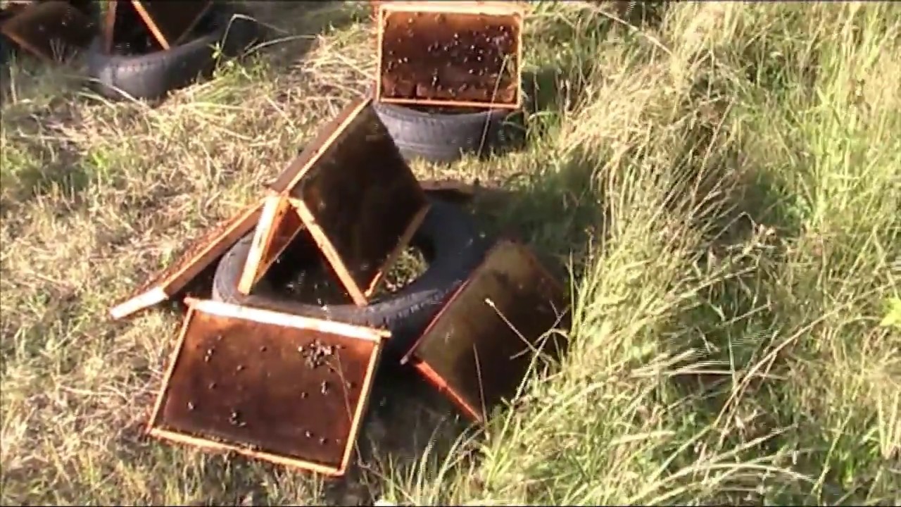 После откачки меда мы сушим рамки, таким образом, как показано в нашем видео. Делать это нужно обязательно. Так как на рамках остаться мед, их нужно дать пчелам, для полной просушки.