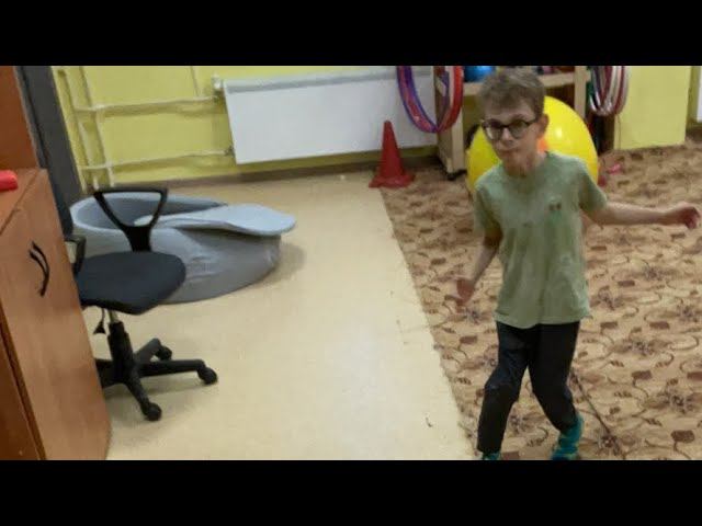 Тренировка равновесия для ходьбы // 2-й уровень // бегает на согнутых | ДЦП Ангел