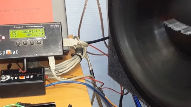 Тест сабвуфера MAGNUM MLW 122 V-BOX (динамик модели MLW 12-24SM). Сигнал частотой 60Гц, мощностью 300 Вт подавался с короткими перерывами (зацикленный трек длительностью 1 мин) в течение 38мин (время работы камеры, а по факту около часа. Камера вырубилась на 33-й мин, а заметили это только через 20мин, т.к. в одном помещении с сабом находиться было невозможно). Сабвуфер справился с нагрузкой и продолжил трудиться в нашем французском каблучке.