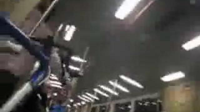 Полицейский задерживает 37-летнего жителя Западного Окленда (Калифорния), который начал нарушать общественный порядок в метро. После того, как коп разбил стекло на станции головой задержанного и порезался сам, обоих отправили в больницу. Поначалу офицеру начали аплодировать, а вот после того, как он высадил стекло, попритихли и, похоже, испугались.