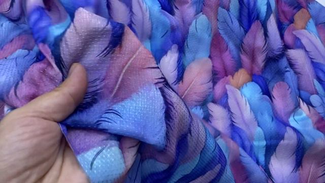 Вискоза синего цвета с принтом перья 17406