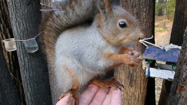 Единственная белка, которая всегда предпочитает есть орешки сидя на ладони