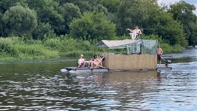 На реке Москве у первого пляжа двухэтажный дом катамаран плавучий