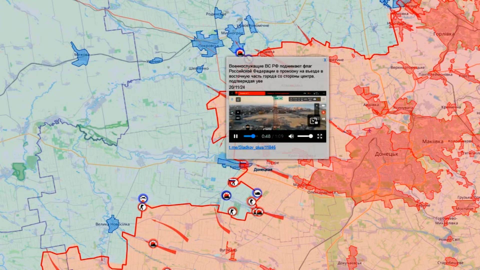 Карта боевых действий. Бои за город Курахово и Великую Новоселку
