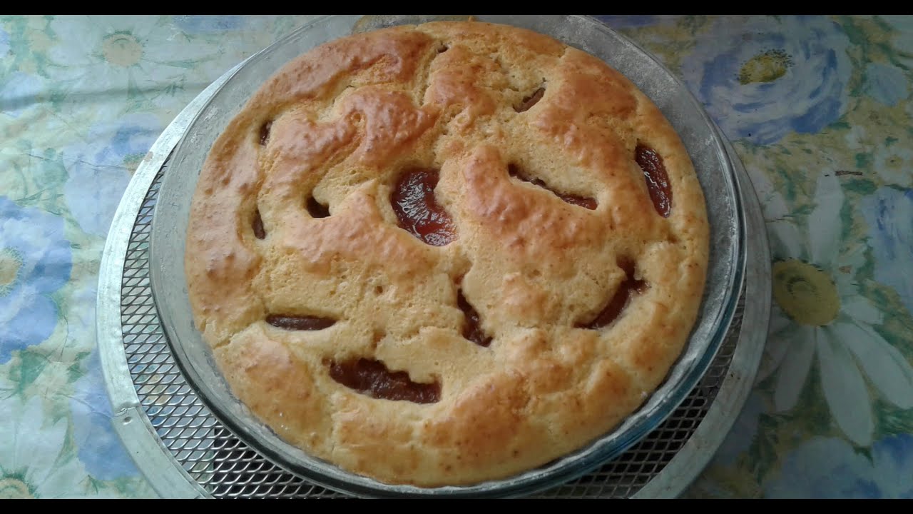 Быстрый пирог на молоке с вареньем из персика рецепт выпечки .