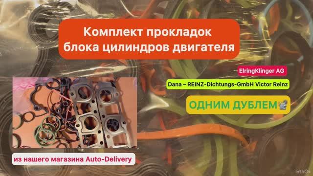 Комплект_прокладок_блока_цилиндров Честно говоря, с трудом видео получилось из-за отсутствия навыков одиночной съёмки. Один дубль, но пустые длящиеся кадры, потому что телефон пришлось положить на стол и разрезать упаковку или устанавливать штатив. Но видео всё равно получилось крутым, потому что удалось показать отличное качество компонентов комплекта прокладок блока цилиндров двигателяElring AUDI 3.2 FSI ВЕРХ. Мы считаем, качество прокладок должно быть таким же премиальным, как и всех остальных автозапчастей, тем более, прокладка может стать причиной головной боли автомобилиста и сердечной (🫀двигателя ) автомобиля. Поэтому эти прокладки из нашего магазина установили в автомобиль сотрудника во время ремонта двигателя Audi A6 C6 3.2 FSI BYU 2007 года производства. ❗️Артикул комплекта 244.650 Применим так же к автомобилям Audi A4 B7, Audi A6 C6; Audi A8 D3 🫀С Двигателями 3.2 (AUK; BYU; BKH; BPK) 🗓️Годы выпуска автомобилей 2005-2010 годы Классика автоAudi♥️ 🏭Изготовитель Сделано в Германии/Made in Germany ElringKlinger Automotive Parts (China) Co.Ltd.(привезён комплект из Китая) ElringKlinger AG В том числе прокладки ГБЦ Dana – REINZ-Dichtungs-GmbH Victor Reinz В оригинале Audi AG стояли прокладки Victor Reinz, поэтому, возможно, ElringKlinger AG комплектует наборы прокладок Victor Reinz. Комплект запечатан, после вскрытия внешней упаковки возврату и обмену не подлежит, когда его покупаешь. 🆔Оригинальные номера Volkswagen Group 06E 103 148 M; 06E103148M, 06E 103 149 M; 06E103149M, 06E 103 649 A; 06E103649A, 06E 103 650 A; 06E103650A, 06E 103 484 G; 06E103484G, 06E 103 483 G; 06E103483G, 06E 253 039 C; 06E253039C; 06E253039E, 06E 198 717; 06E198717, 06E 133 073 A; 06E133073A, 079 129 717 B ; 079129717B 🟰Номера аналогов (Elring🌹 и Victor Reinz) 61-36385-00; 613638500; 61-36390-00; 613639000; 60-36390-00; 603639000; 60-36385-00; 603638500; 725.190; 725190; 725.160; 725160; 720.220; 720220; 720.230; 720230; 725.870; 725870; 725.860; 725860; 724.250; 724250; 232.910; 232901; 236.720; 236720; 225.170; 225170; 728.550; 728550; 369.470; 369470; 026.790; 026790; 403.730; 403730; 129.720; 129720; 964.170; 964170; 239.850; 239850 Посмотреть весь комплект можно 🟢АВИТО ДОСТАВКА https://www.avito.ru/moskva/zapchasti_i_aksessuary/komplekt_prokladok_dvs_audi_a6_c6_3.2_verh_4663881716 🛍️сайт магазина https://auto-delivery.ru/en/parts/tproduct/691722748-695384509212-komplekt-prokladok-dvs-audi-32-fsi-verh