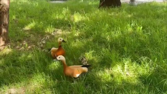 Семья уточек гуляет у метро Шаболовская.