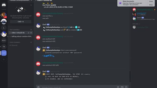 So in this video, I would teach you quite a lot owo commands. Its not all of them so good luck at exploring. Thanks for watching!