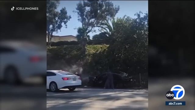 A disturbing video posted on social media shows a driver being robbed by a group of thieves in broad daylight after a violent crash on the 10 Freeway in South Los Angeles. Full story: https://abc7.com/video-crash-flash-robbery-10-freeway/13971488/