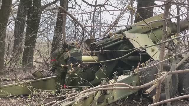 Минобороны России опубликовало кадры боевой работы расчетов 152-мм буксируемых пушек «Гиацинт-Б» Западного военного округа, выполняющих огневые задачи по уничтожению бронетехники и укрепленных позиций ВСУ в зоне проведения специальной военной операции. Боевые задачи в составе одного из расчетов буксируемых артиллерийских установок «Гиацинт-Б» выполняют четыре родных брата. В ходе проведения специальной военной операции артиллерийские подразделения Западного военного округа продолжают выполнять огневые задачи по поражению артиллерийских батарей ВСУ, разрушению оборонительных сооружений, подавлению пунктов управления, уничтожению огневых средств, вооружения и военной техники противника. Источник: ДИМК МО РФ