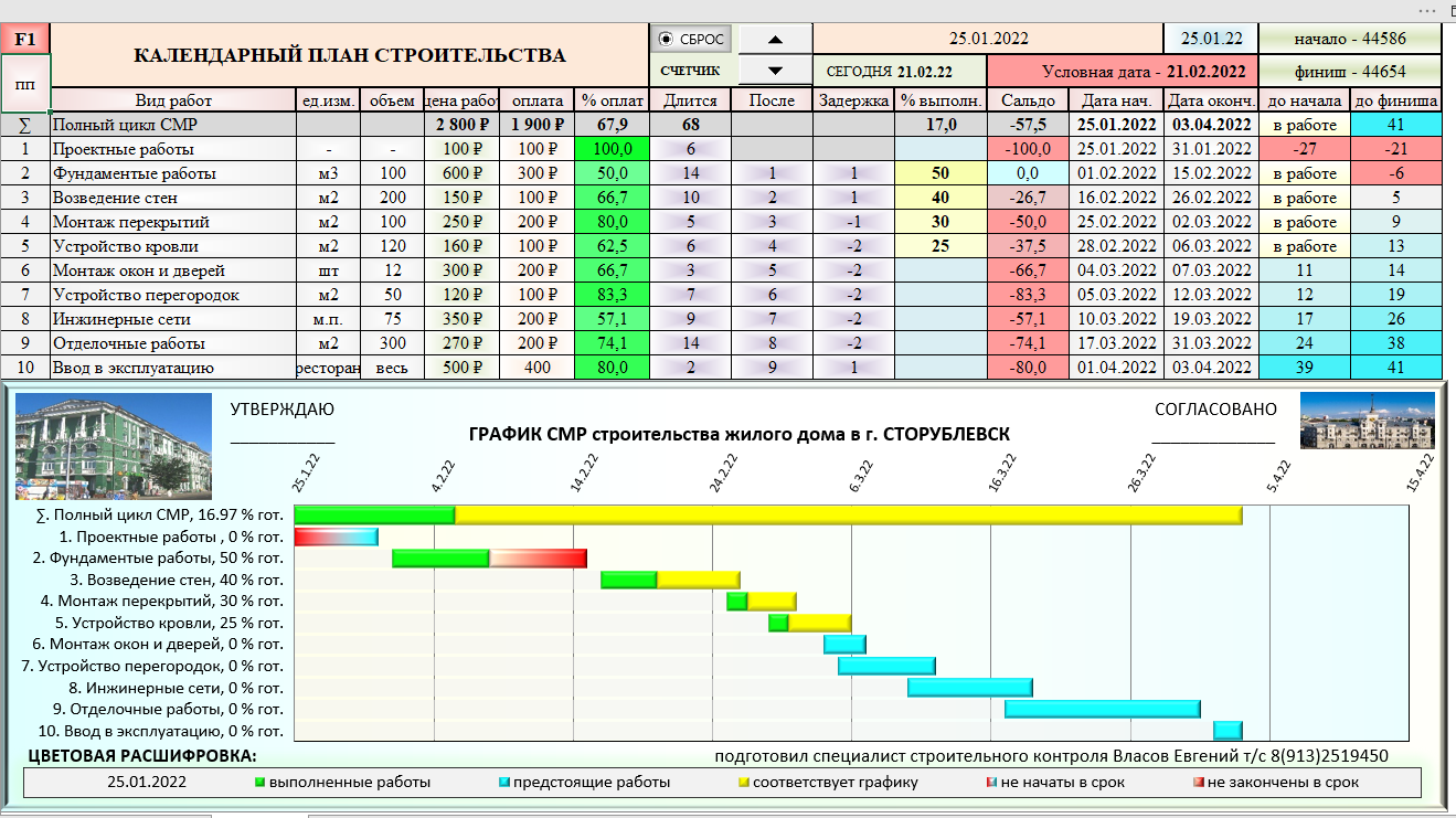 Excel Построение Графиков СМР (диаграмм Ганта) с элементами контроля сроков