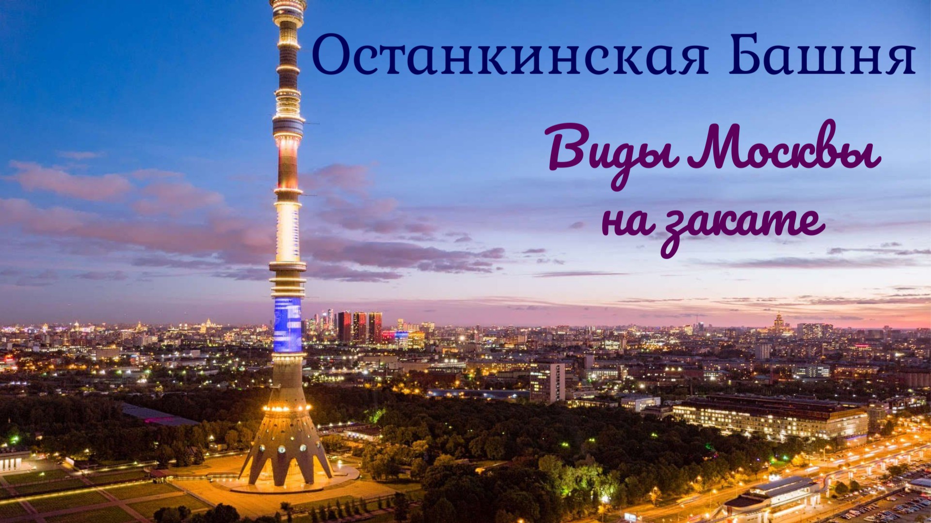 Башня Останкино на закате с видами Москвы
