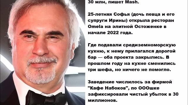 Ресторан дочери Валерия Меладзе закрылся в Москве из-за убытков в 30 млн