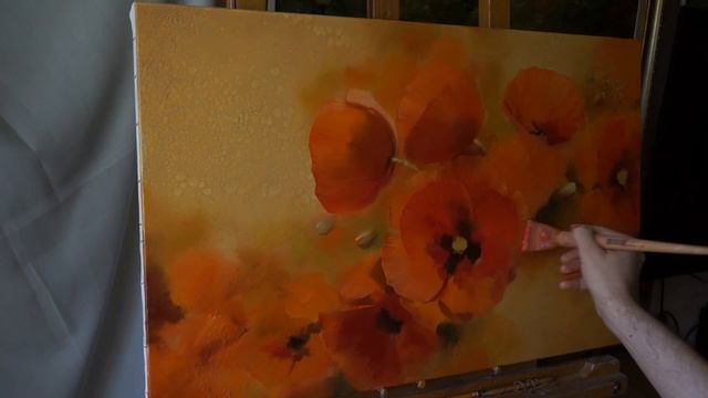 Oil painting Alla prima. Orange poppy. Оранжевый мак Живопись маслом