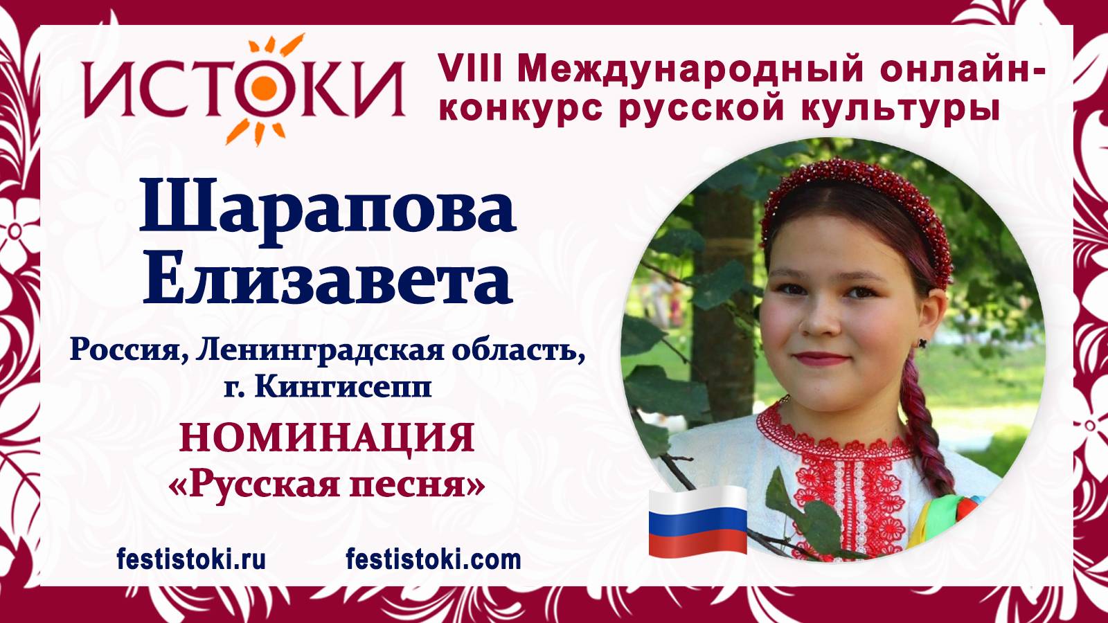 Участник VIII Международного онлайн-конкурса русской культуры "Истоки". Номинация "Русская песня". Русская народная песня из репертуара Лидии Руслановой "Эх, матушка". Аранжировка Виталия Разговорова. Сайт: festistoki.ru / festistoki.com E-mail: festistoki@mail.ru