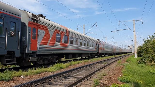 ЭП1М-664 синий с поездом №62 "Эльбрус" Москва-Нальчик поехал после пробы тормозов