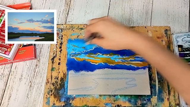 Весенний вечер. Весенний пейзаж. Рисуем масляной пастелью. Бесплатный урок. Марафон Расцветай.