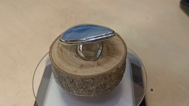 Показ серебряного кольца с голубым ониксом.